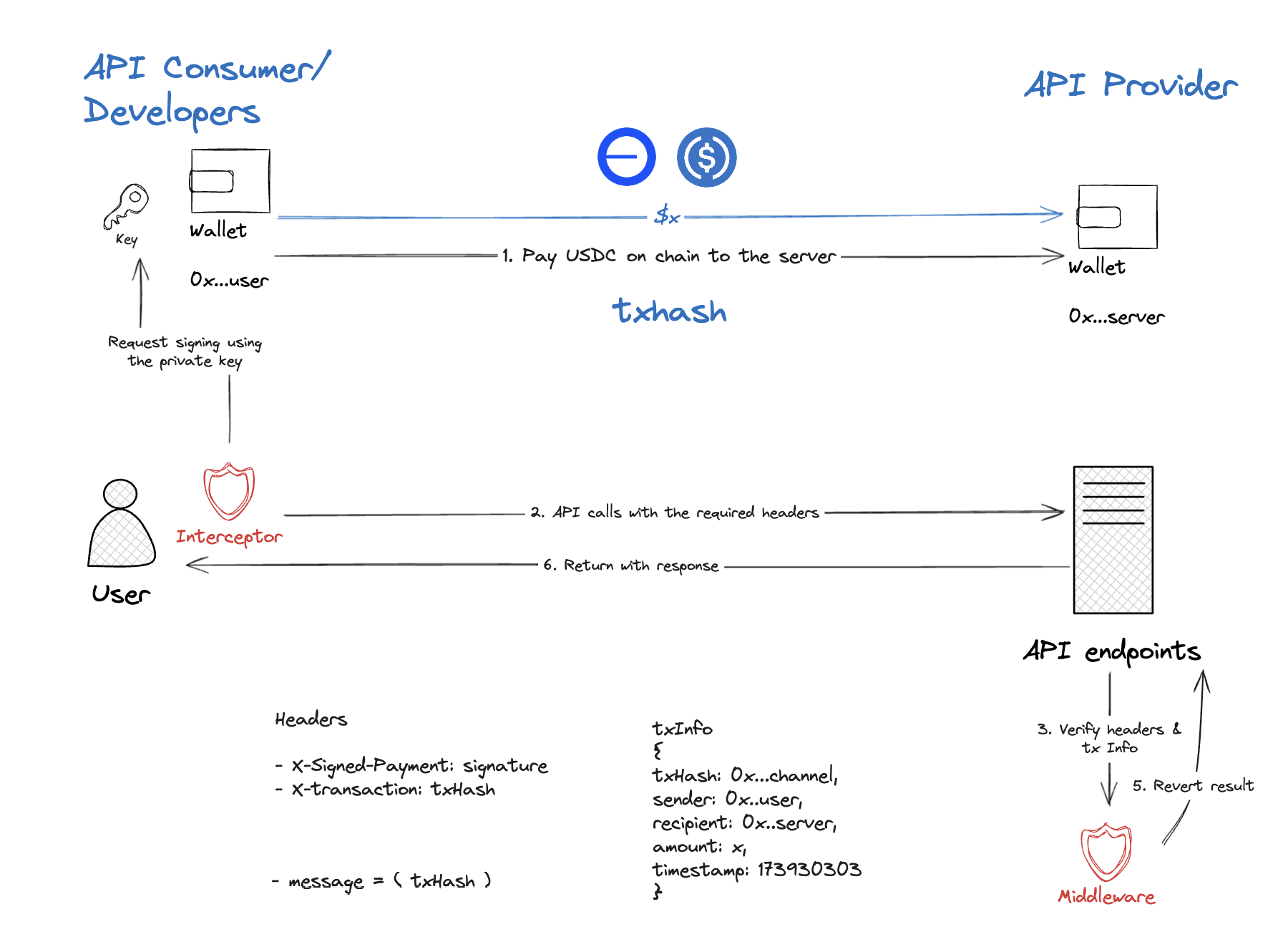 - API Request: Consumer includes transaction hash in API request with cryptographic proof